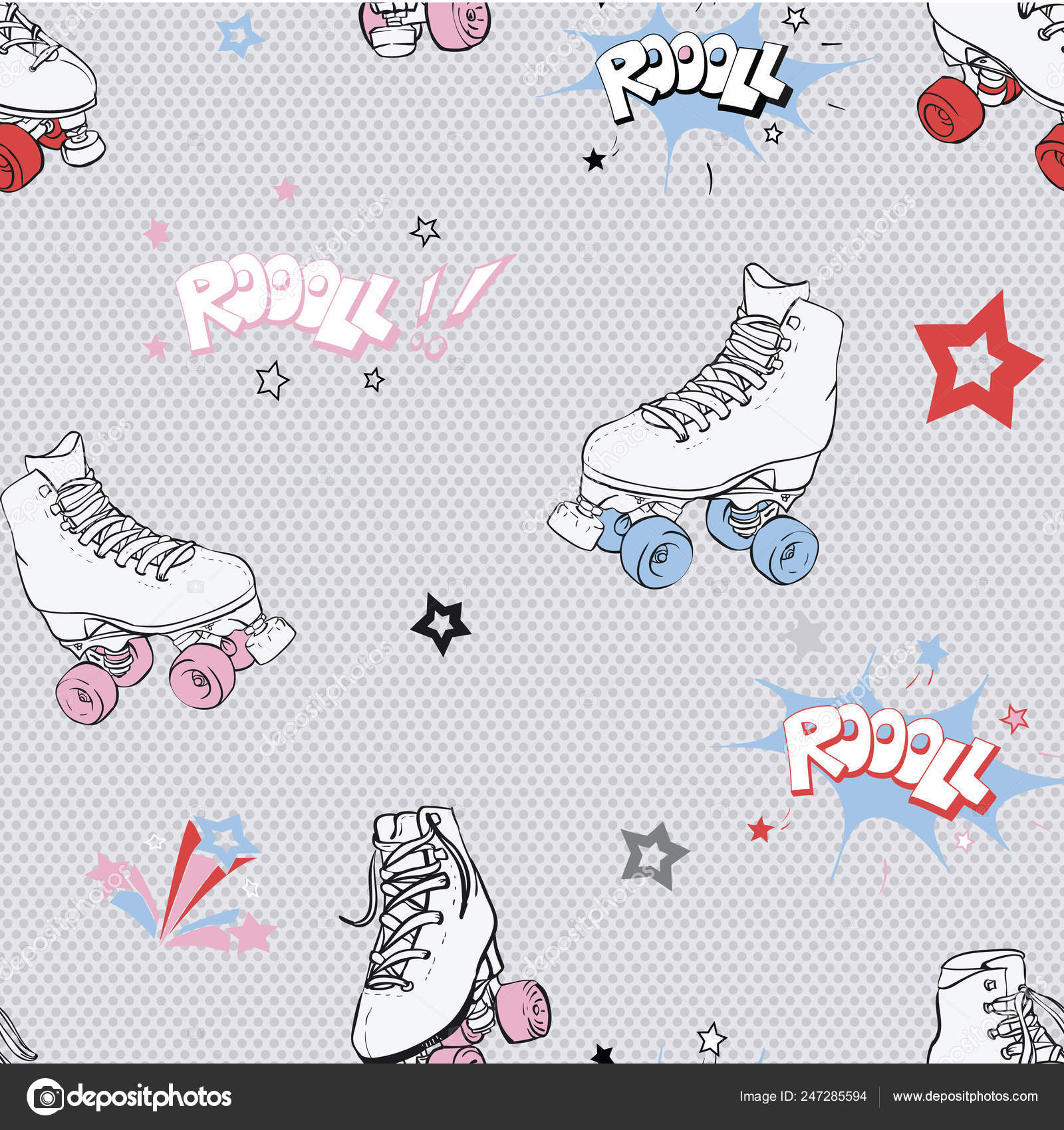 Seamless Pattern With Cute Retro Roller Skates Wallpaper Roll Pixers We Live To Change