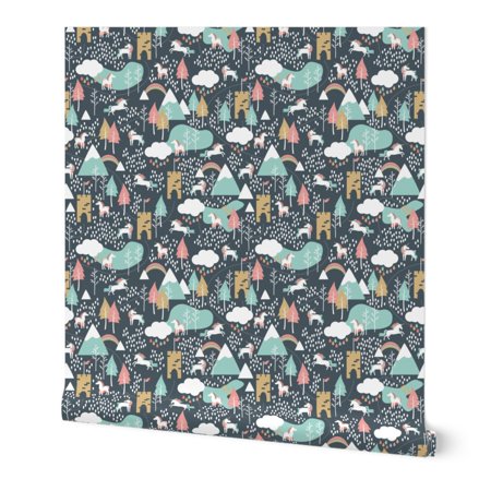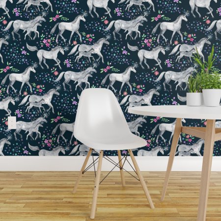 Roostery Wallpaper Roll Unicorn Nursery Decor Watercolor Horse