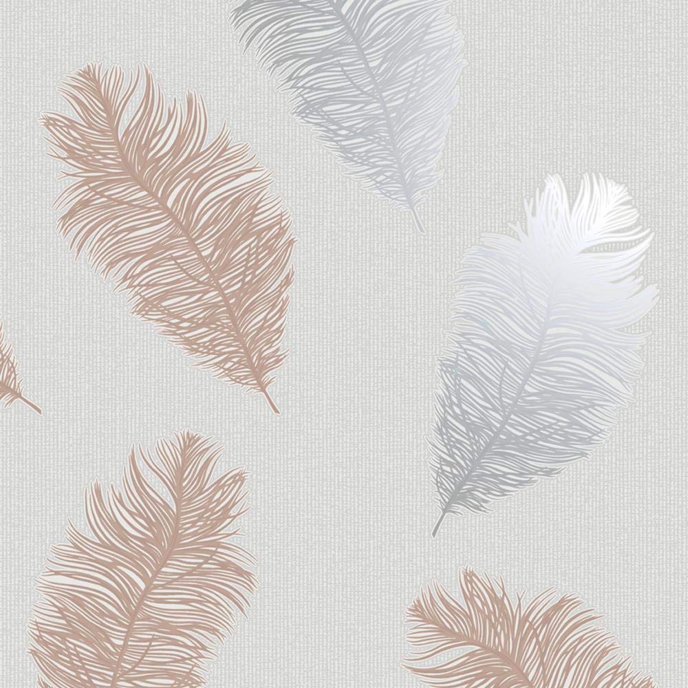 Feathers Wallpaper Glitter Metallic Rose Gold Silver Grey Textured
