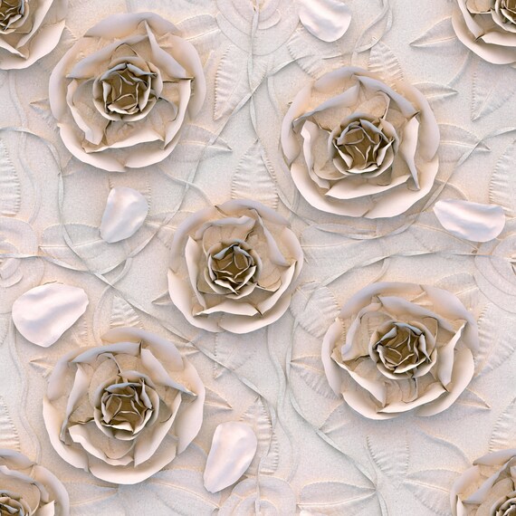 Printmyspace Elegant 3d Rose Gold Roses Wallpaper Self Etsy