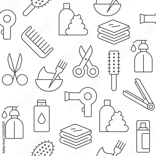 Seamless Pattern Hair Salon Set Outline Icon Suitable For
