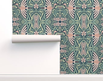 Dollhouse Miniature Wallpaper Jackson Art Nouveau Ottoman Green