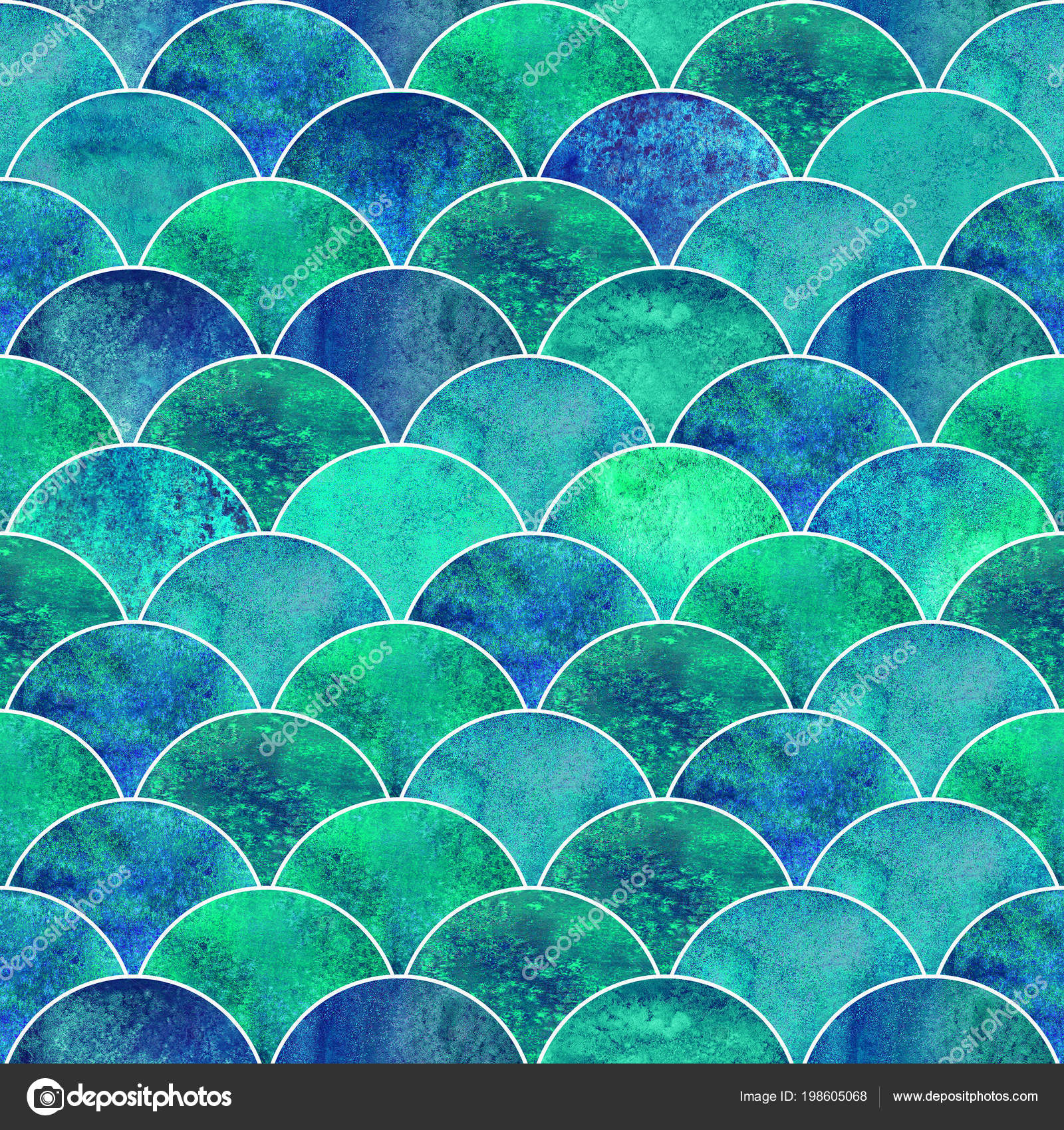 Mermaid Scale Ocean Wave Japanese Seamless Pattern Watercolor Hand