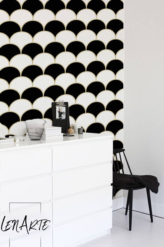 Tempaper Designs Mosaic Scallop Black And Cream Removable Wallpaper Ms579 Bellacor