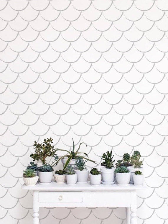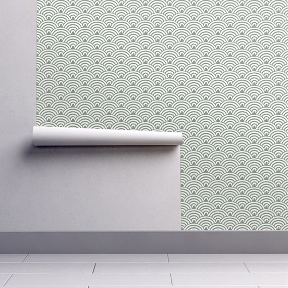 Sage Green Scallop Wallpaper Scallops Sage Green And White Etsy