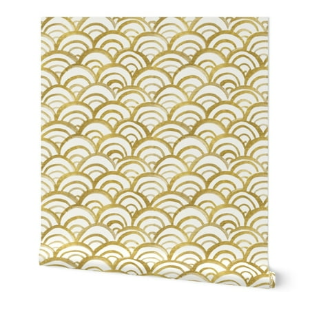 Spoonflower Peel And Stick Removable Wallpaper White And Gold Waves Painted Scallop Texture Print Self Adhesive Wallpaper 12in X 24in Test Swatch Amazon Com