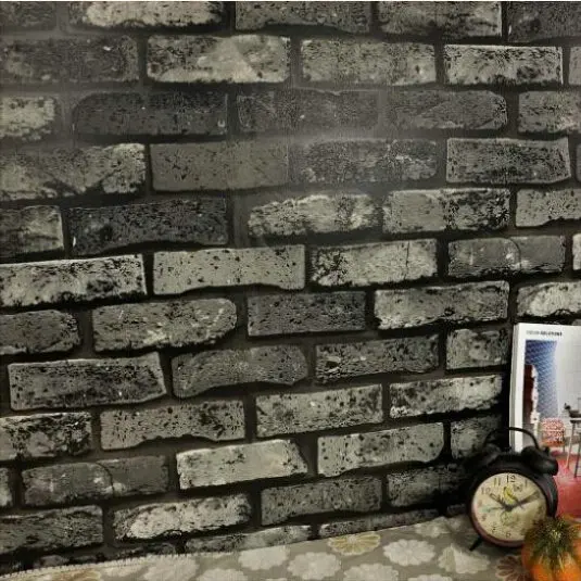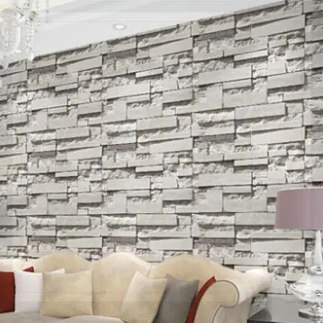 Modern Natural Grey Rustic Stone Brick Realistic Vinyl Wallpaper