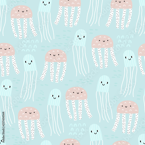 Seamless Pattern With Cartoon Sea Creatures Creative Undersea Childish Texture Cute Texture For Fabric Wrapping