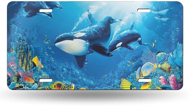 Amazon Com Dunpaiaa Killer Whales Orcas Ocean Sea Animals Wallpaper Automobile 6x12 Front License Plate License