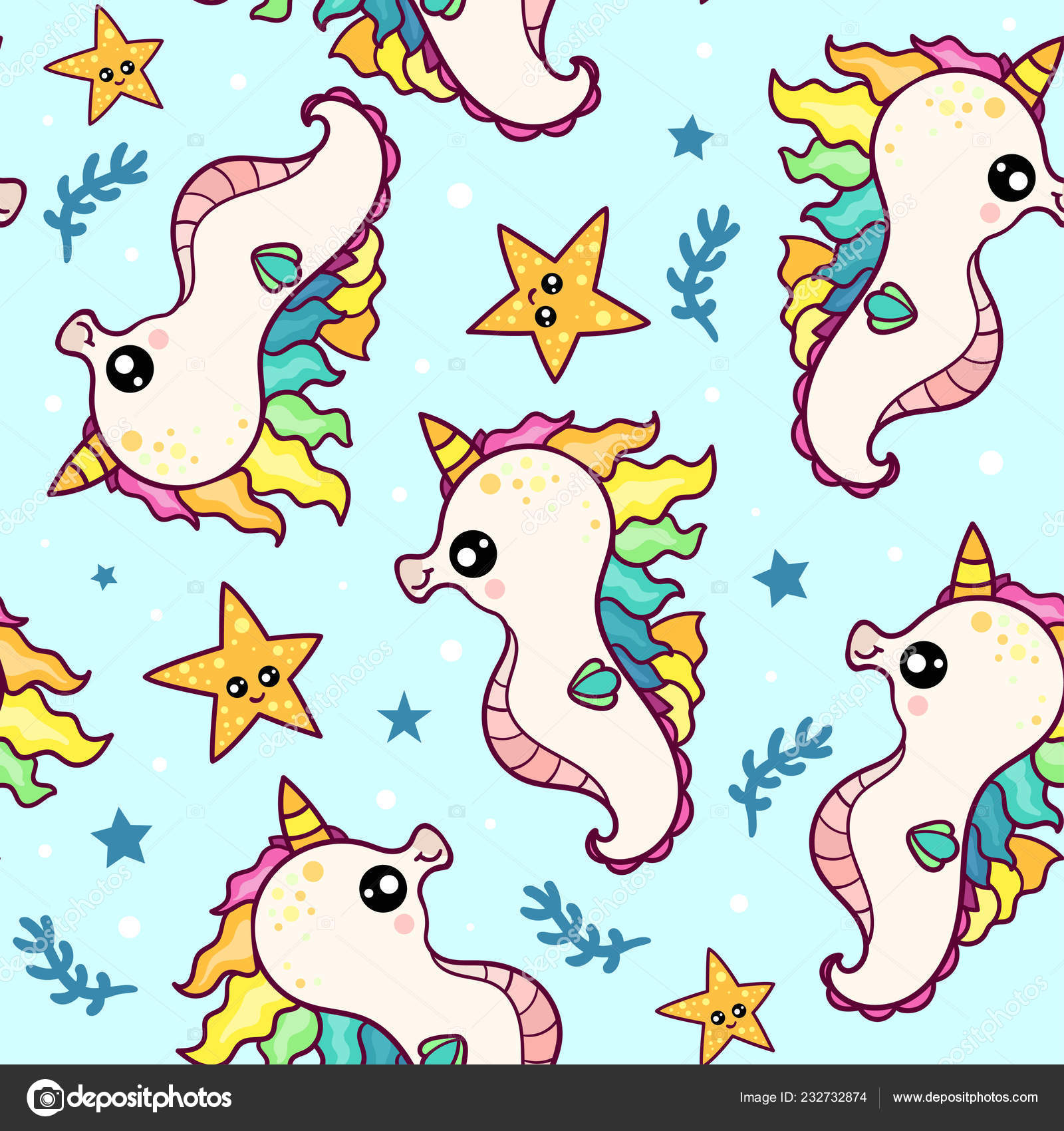 Seamless Pattern Seahorses Sea Stars Design Fabric Wallpaper Etc