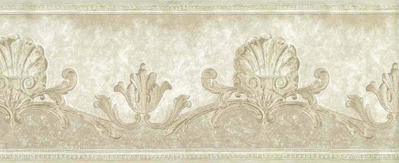 Cream Ivory Shells Wallpaper Border Nautical Scrolls Pearlized Etsy