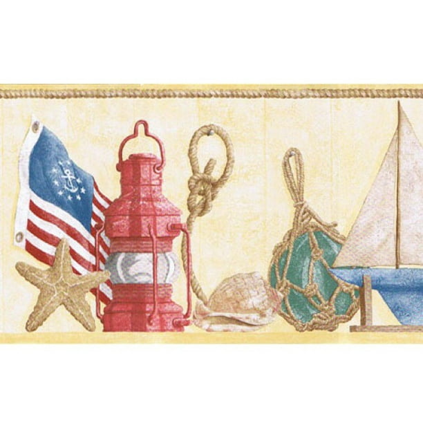 879065 Nautical Seashell Starfish Sailboat Wallpaper Border
