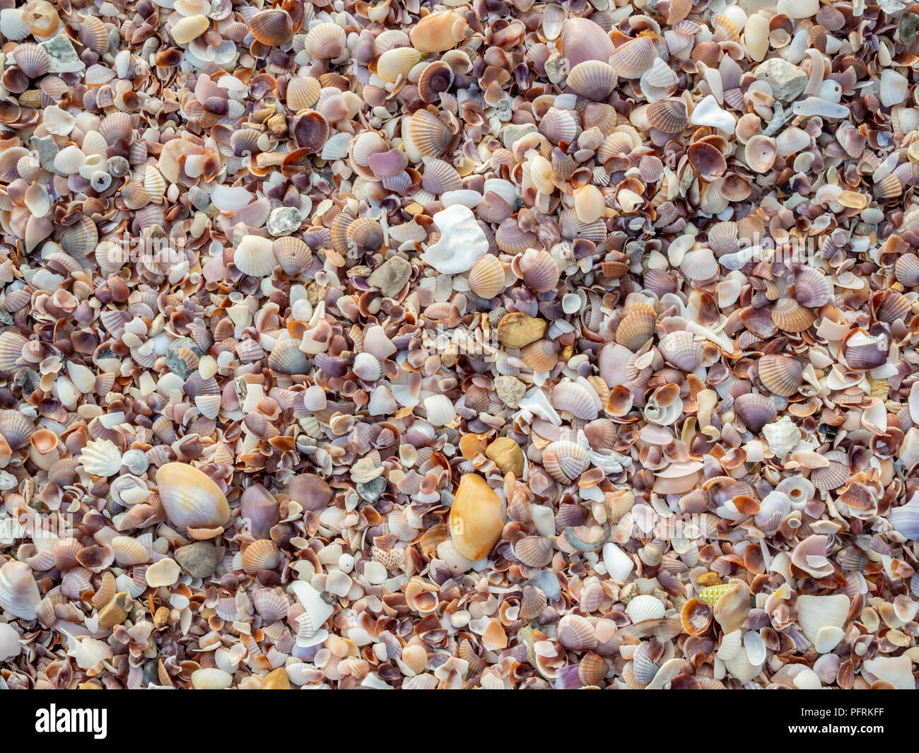 Beautiful Colorful Of Seashells Texture Background On The Beach