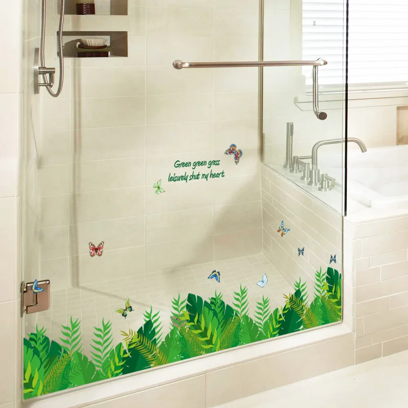 Green Leaves Fern Grass Baseboard Wall Stickers Bathroom Kitchen