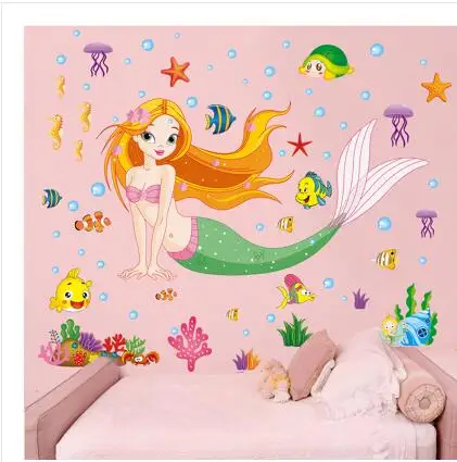Mermaid Baby Children Room Wall Stickers Bedroom Cartoon Wallpaper