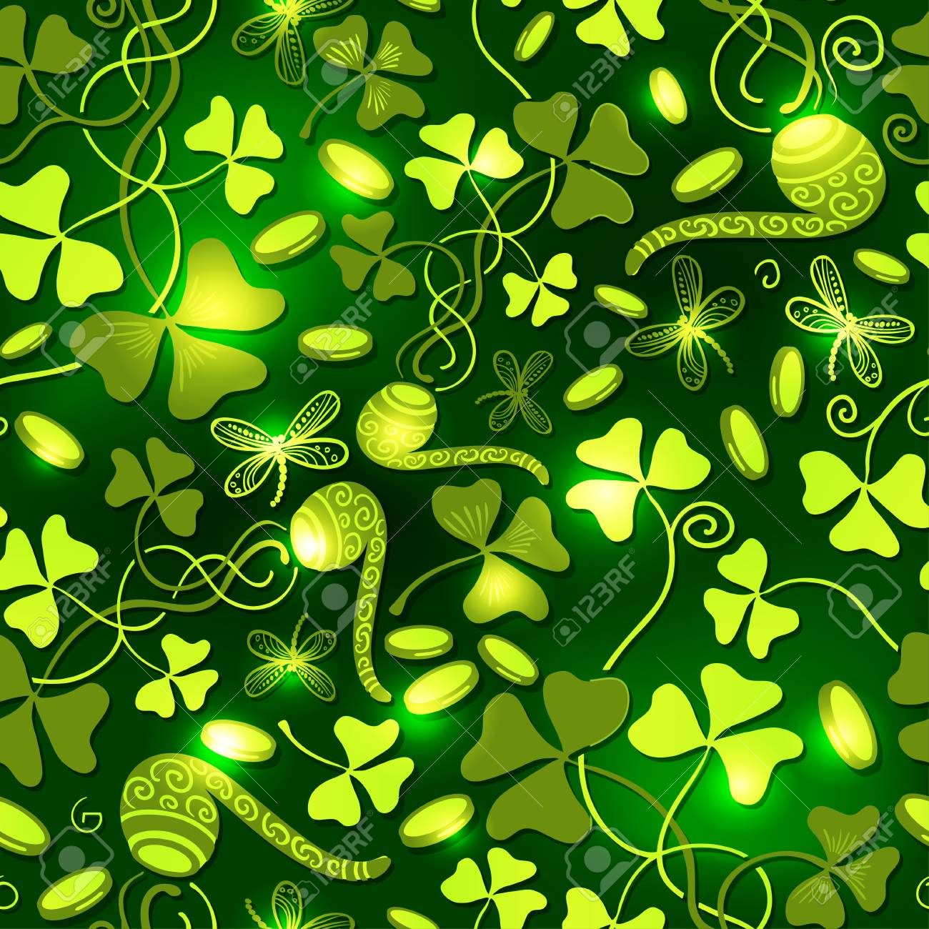 Clover Leaves Seamless Pattern St Patrick S Day Green Background