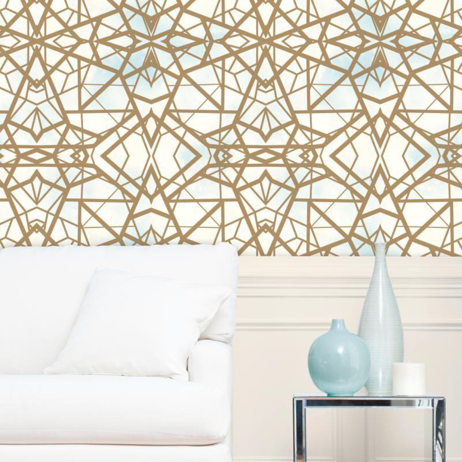 Shatter Geometric Peel Stick Wallpaper In Sky And Gold By