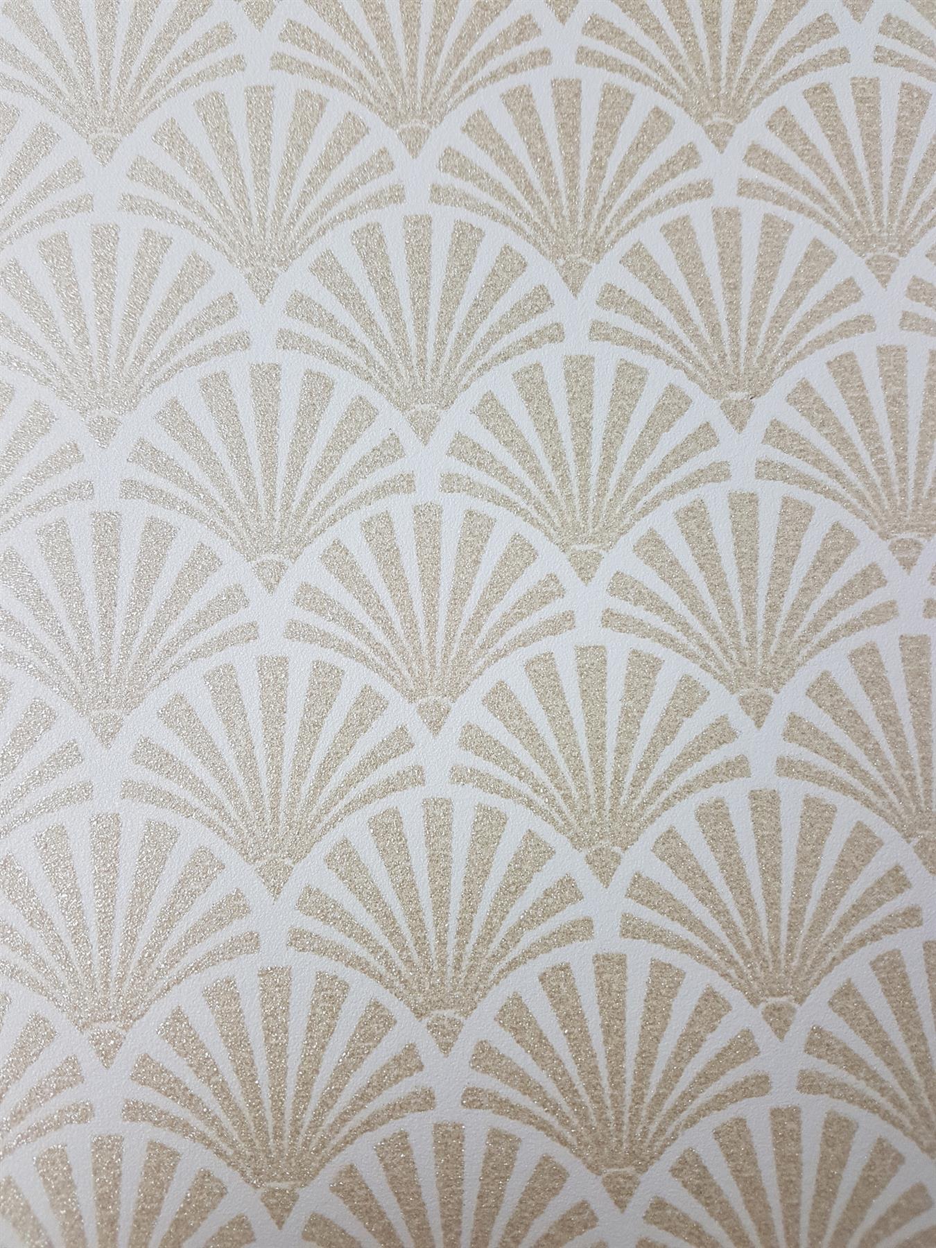 Vintage Glitter Retro Fan Shell Wallpaper Off White Gold Shimmer
