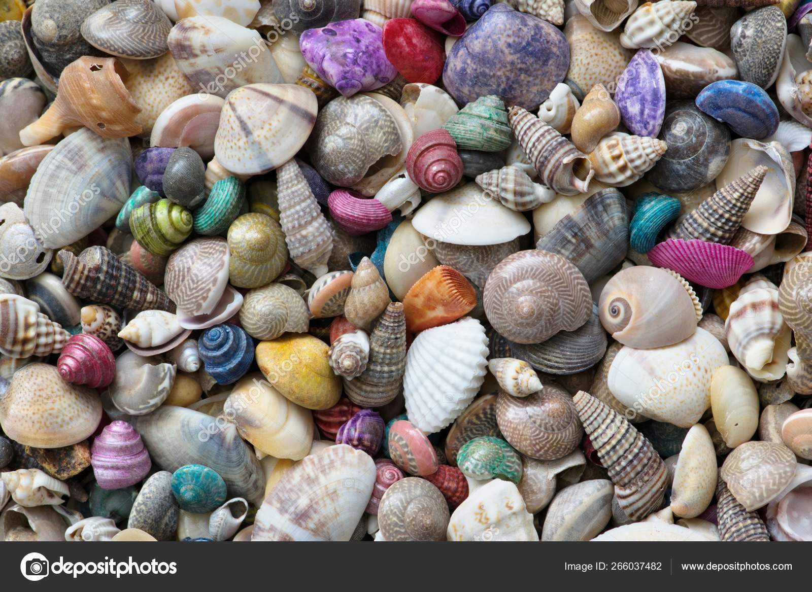 Mixture Tiny Colored Sea Shells Creating Colorful Background
