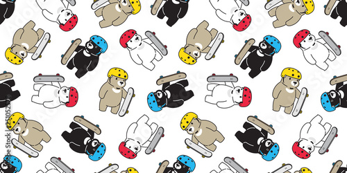 Bear Seamless Pattern Skateboard Vector Polar Bear Skating Helmet