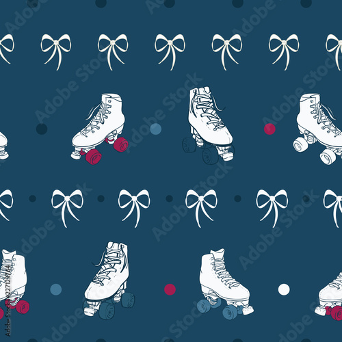 Vector Christmas Roller Skates And Lace Bows On Navy Blue Seamless Pattern Background Perfect For Fabric Scrapbooking And Wallpaper Projects Buy This Stock Vector And Explore Similar Vectors At Adobe Stock