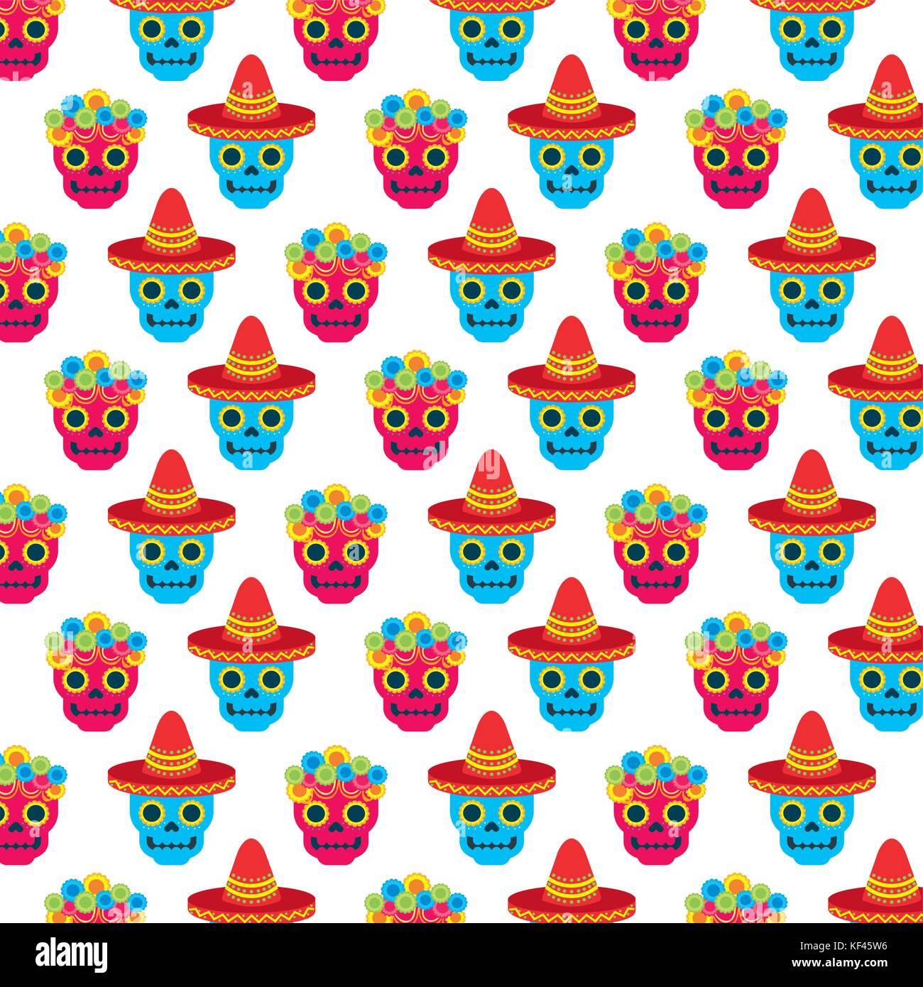 Skull Hat Flower The Day Of The Death Mexican Culture Wallpaper