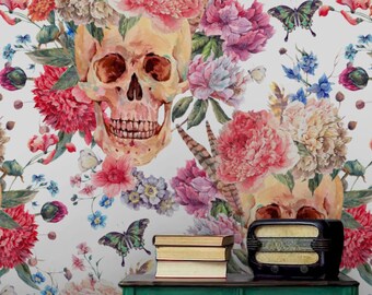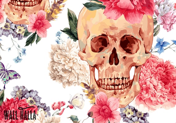 Seamless Skull And Flowers Pattern Wallpaper Self Adhesive Etsy