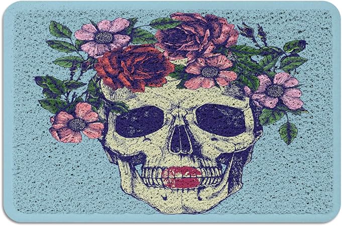 Amazon Com Greday Skull And Flower Wallpaper Doormat Heavy