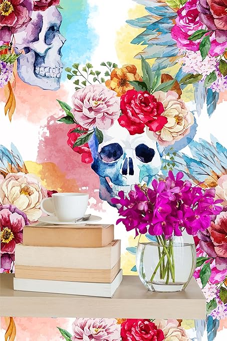 Sugar Skulls Flowers Wallpaper Surface Covering Youcustomizeit