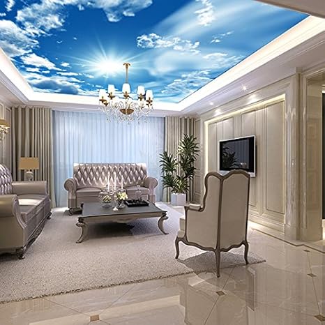 ᐂcustomize Beautiful Ceiling 3d Wallpaper Living Room Blue Sky