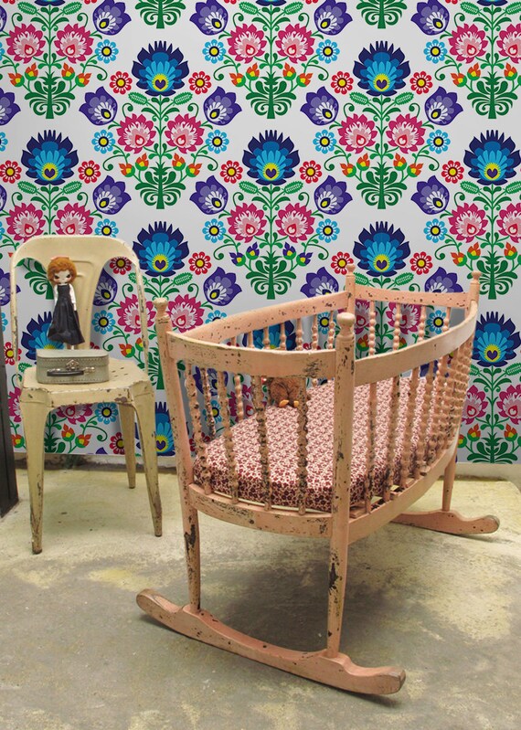 Polish Slavic Folk Removable Wallpaper Colorful Purple And Etsy