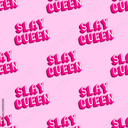 Slay Queen Text Seamless Pattern Feminist Girl Power Quote