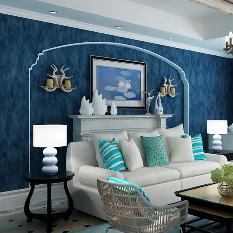 China Factory Solid Color Pvc Wallpaper Peel And Stick Blue Color