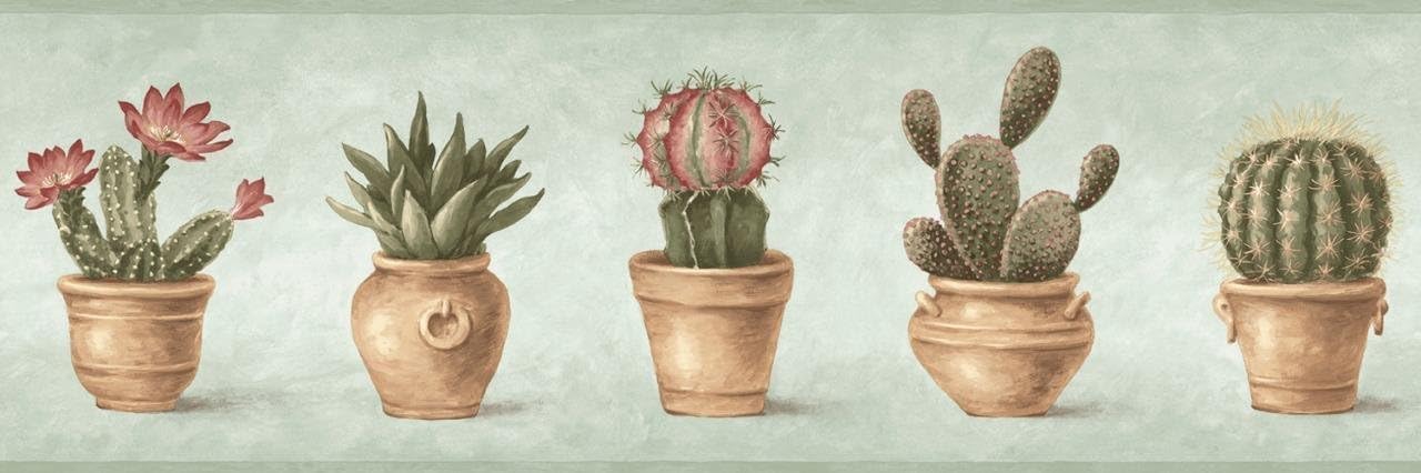 Amazon Com Wallpaper Border Southwestern Potted Cactus Prickly