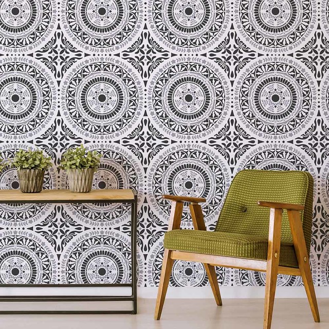 Wallpaper Roll Spanish Tile Tiles Geometric Coloring Book Black
