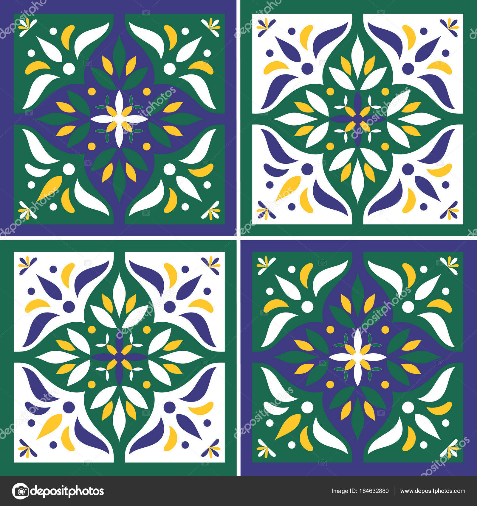 Spanish Tiles Pattern Vector With Blue Green Yellow And White