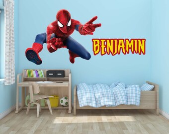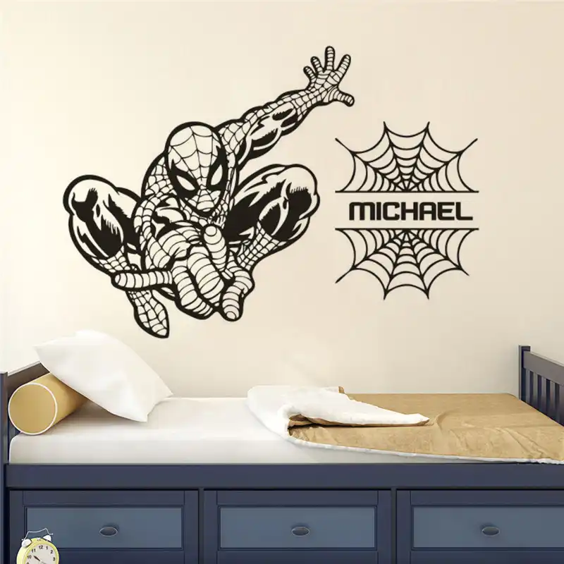 Spiderman Vinyl Wall Decal Custom Boys Name Wall Sticker Superhero