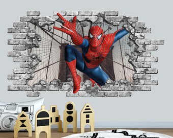 3d Wall Decal Spiderman Wall Sticker Mural Poster 3d Effect Etsy
