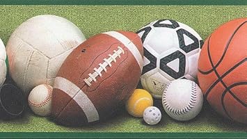 Wallpaper Border Football Basketball Baseball Soccer Ball Beige