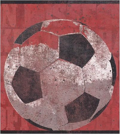 Soccer Balls Faux Distressed Red Wallpaper Border Retro Sport
