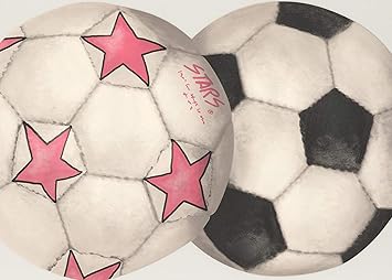 York Wallcoverings Soccer Football Balls Sports White Prepasted