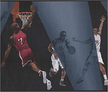 Prepasted Wallpaper Border Basketball Players Grey Black Wall