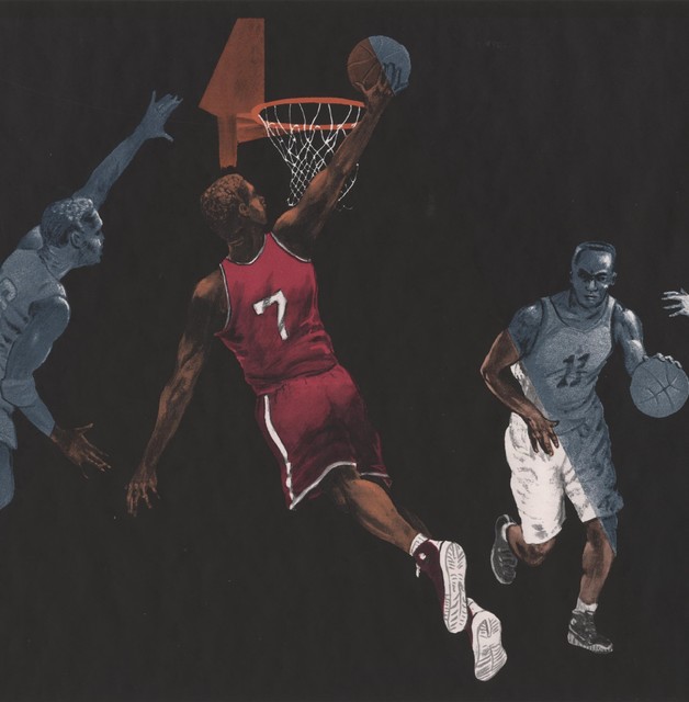 Basketball Players Black Sports Wallpaper Border Retro Design