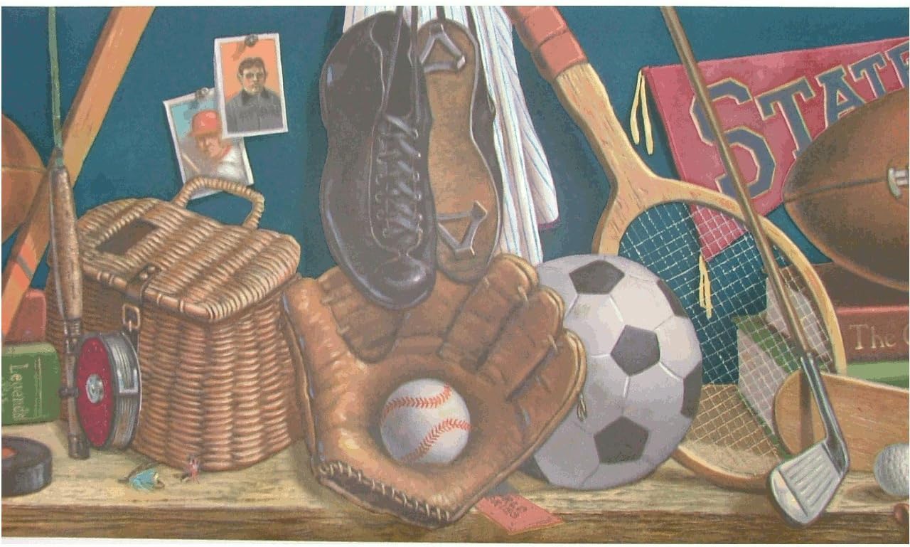 Sports Balls And Equipment On Shelf Wallpaper Border Mn5035