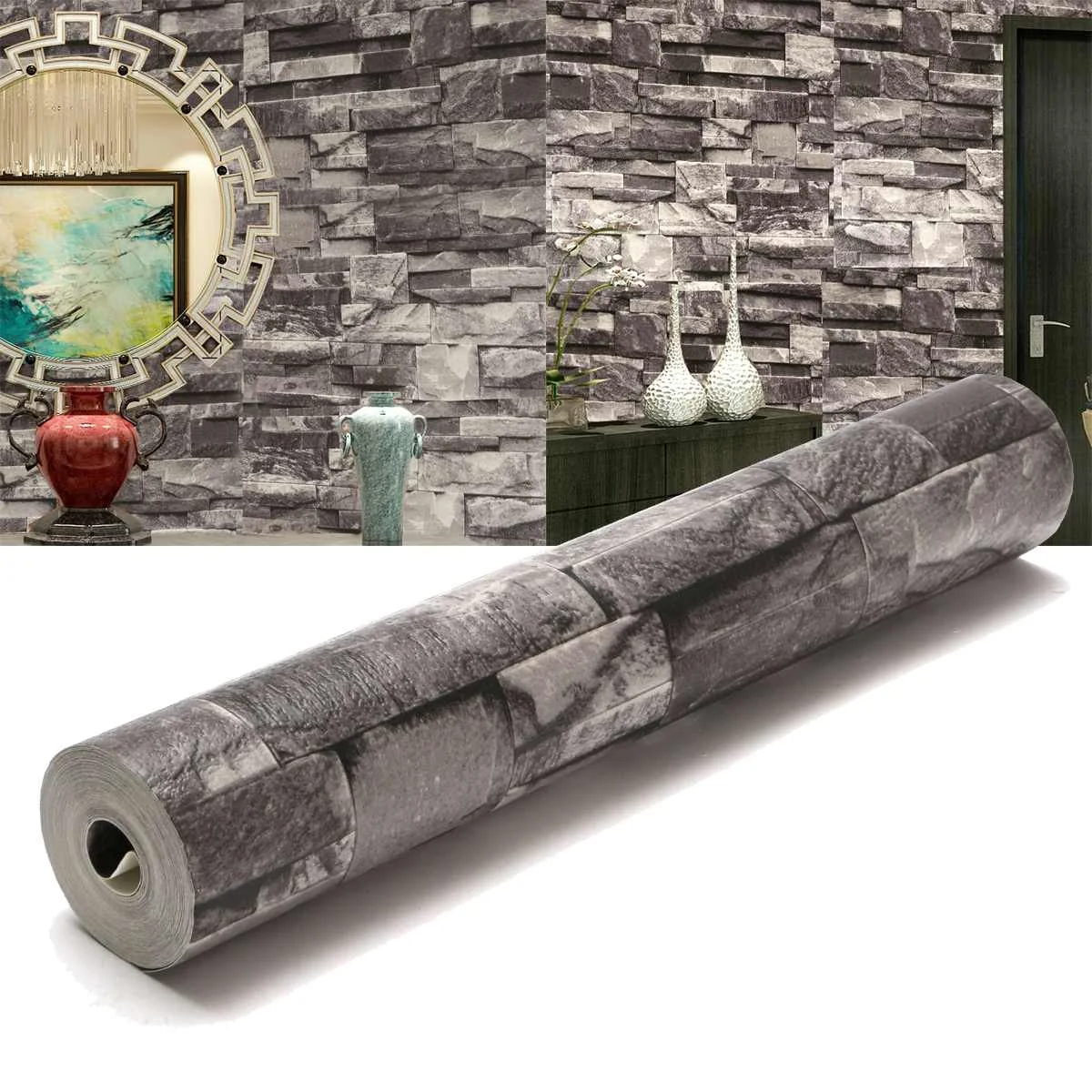 1 2 3 Pcs Dark Grey 3d Effect Wallpaper Stack Stone Brick Wallpaper Textured Waterproof For Home Design And Room Decoration Supe R Large Size 10m X 0 53m 393 7 X 21 Walmart Com