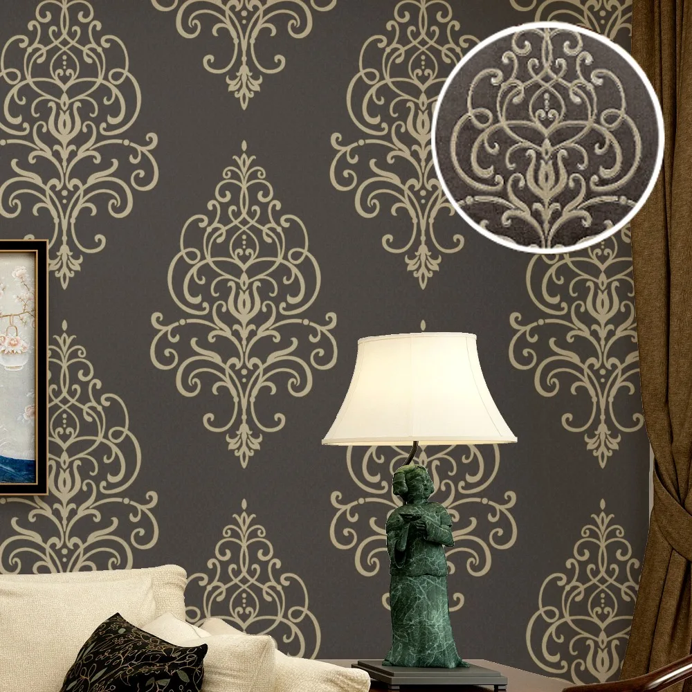 New 3d Embossed Texture Large Damask Wallpaper Roll Gold Brown