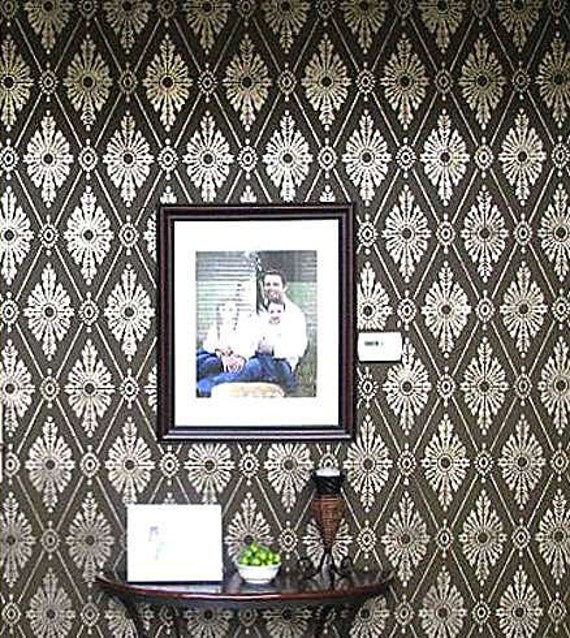 Diamond Damask Stencil Wallpaper Stencils For Diy Decor Etsy