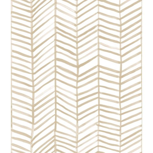 Roommates Cat Coquillette Tan Herringbone Peel And Stick Wallpaper