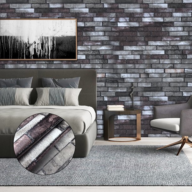 1roll Modern 3d Brick Stone Self Adhesive Wallpaper Peel Stick Living Room Kitchen Home Wall Decoration Library