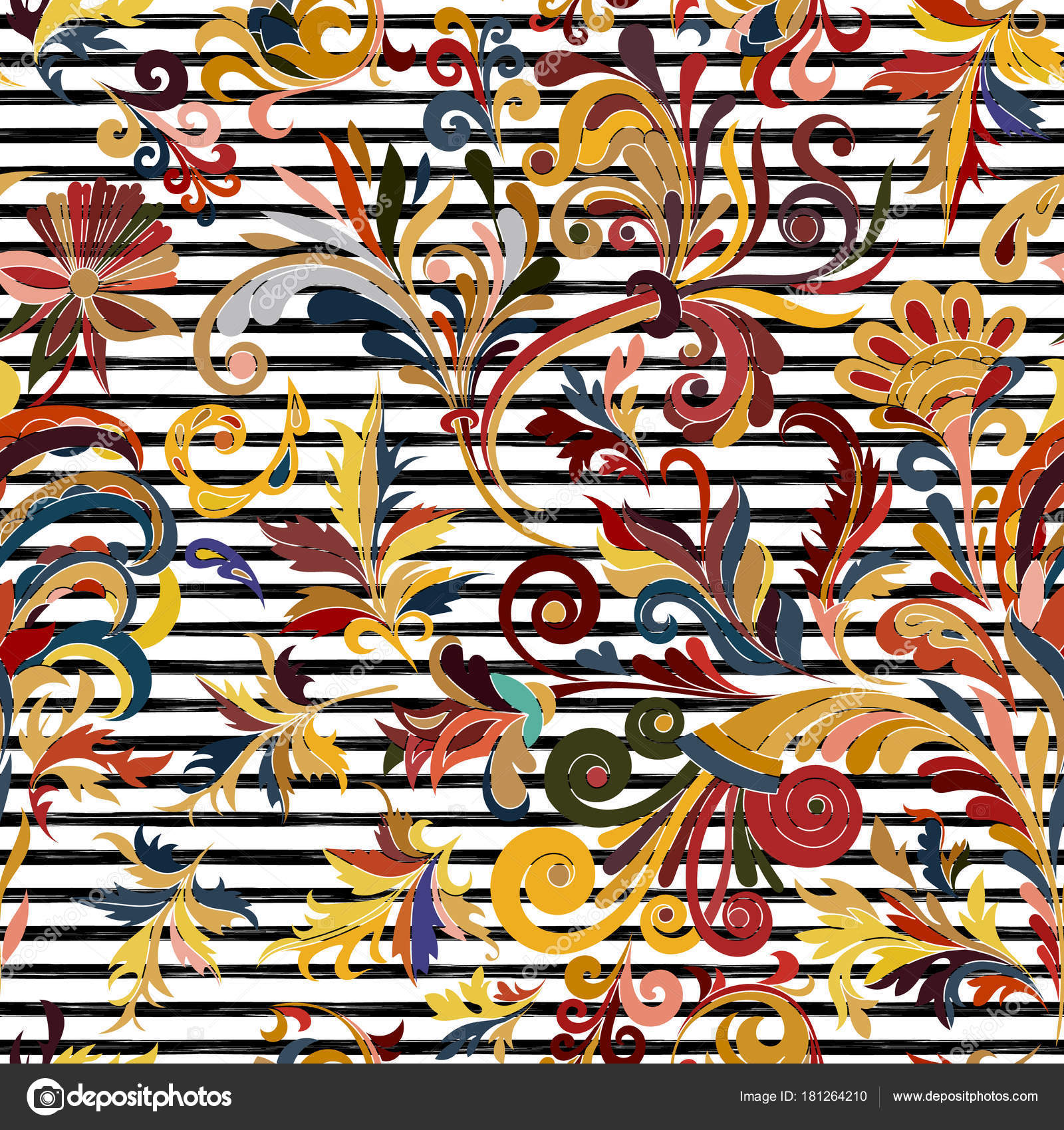 Striped Seamless Pattern Floral Wallpaper Colorful Ornamental